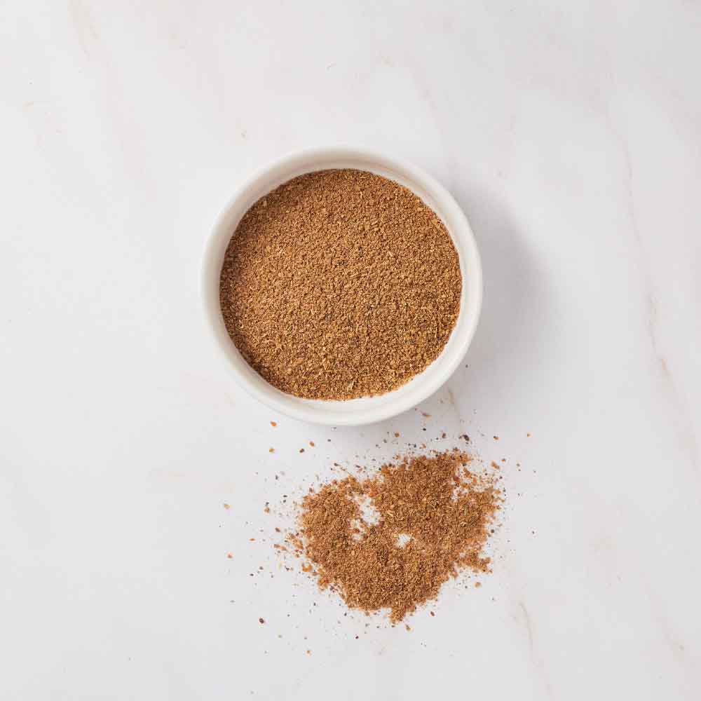 Cumin, Coriander, Dried Pomegranate, Black Mustard, Fenugreek, Fenugreek Leaves, Cloves, Cardamom, Cinnamon, Carom, Black Peppercorns, Dried Red Chiles, and Dried Mango Powder